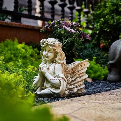 The Decorshed Cute Looking Angel Pot Out Door Planters Pots Poly Resin Pot 1 Piece White, 15.2 Centimeters, 17.8 CM, 25.4 CM\
