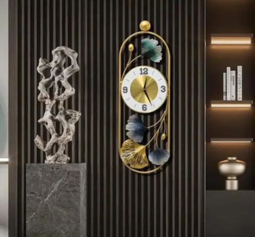 URBAN INSPIRATIONS Decorative Metal Gingko Leaf Wall Clock Big Size, Wall Decoration Items for Living Room/Bedroom/Office/Halls