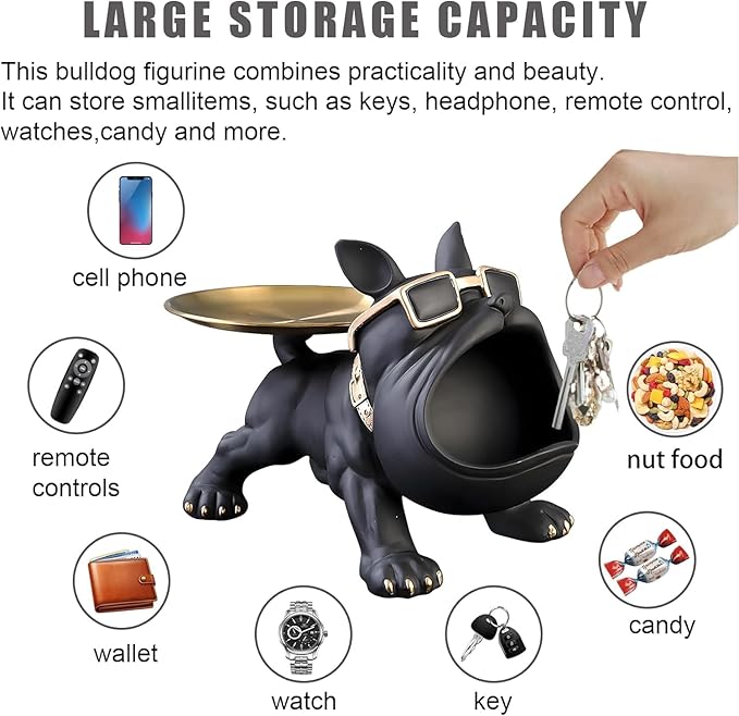 Elevate your home décor with the SkyKey Bulldog Storage Sculpture, a handcrafted masterpiece that combines functionality, elegance, and playful design. Crafted from premium quality resin, this Bulldog Storage Sculpture is more than just an art piece—it doubles as a convenient storage butler for your everyday essentials like keys, jewelry, coins, watches, and trinkets.