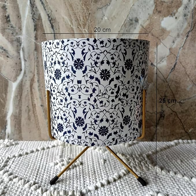 Niyara Colorful Metal Planters Pot for Indoor Plants with Stand Plant Containers Balcony Decoration Size :Large 13 inches Height with Stand (Floral Vine)