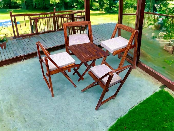 This Outdoor Furniture Set is more than just wooden furnitureโit is a lifestyle upgrade. With foldable design, Sheesham wood durability, and cushioned comfort, it becomes the perfect partner for your balcony breakfasts, garden dinners, terrace hangouts, or indoor dining needs.