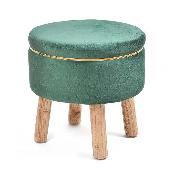 ShadowKart Ottoman Pouffes for Sitting Stool of Wooden Stools Chair Living Room Furniture Footrest Pouf Foot Stool for Office Room Decor (Small-Green)